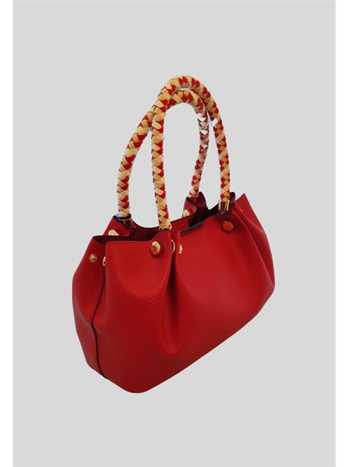 Leather-effect bag, with double gold metallic handles and removable 2-handle shoulder strap