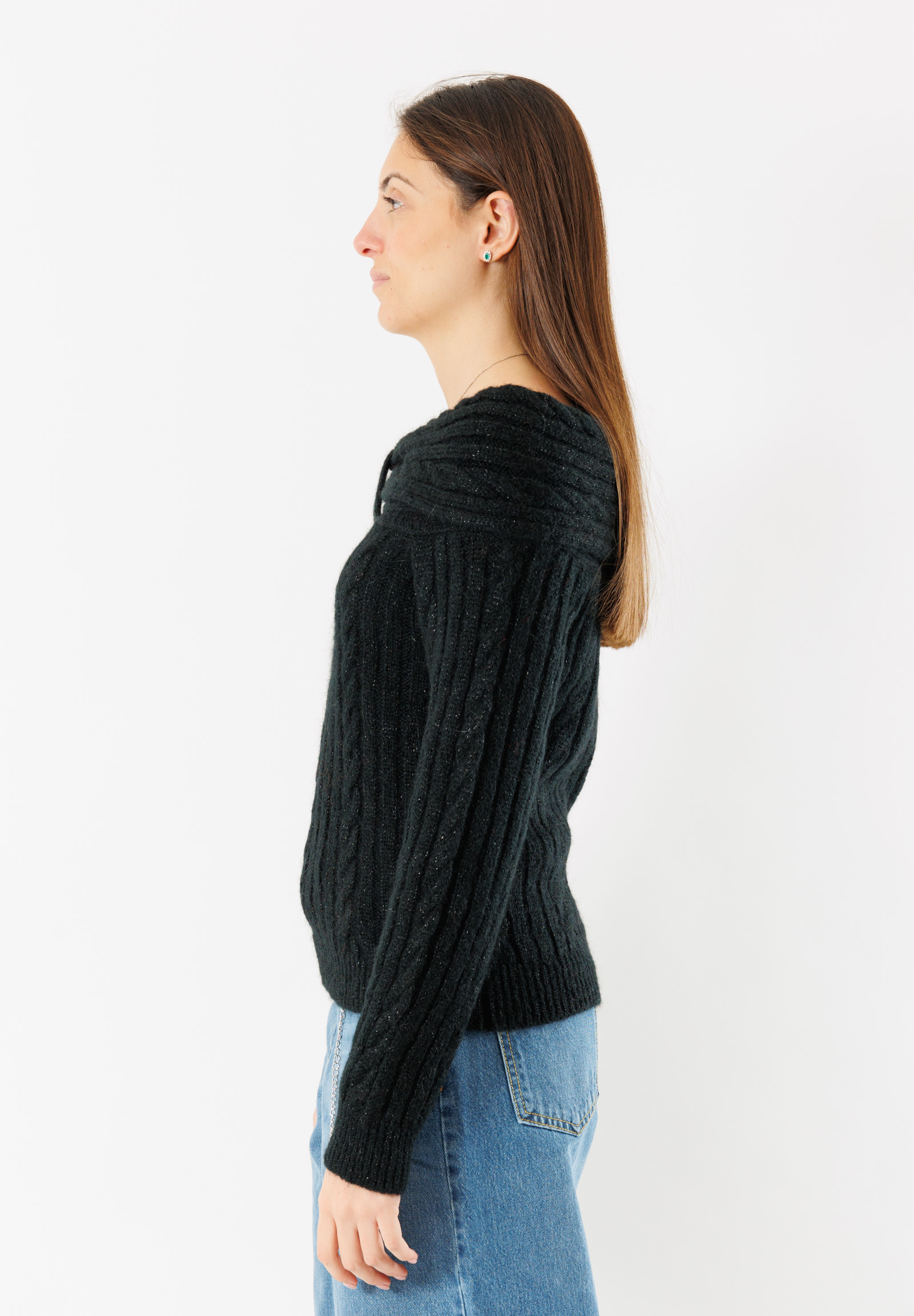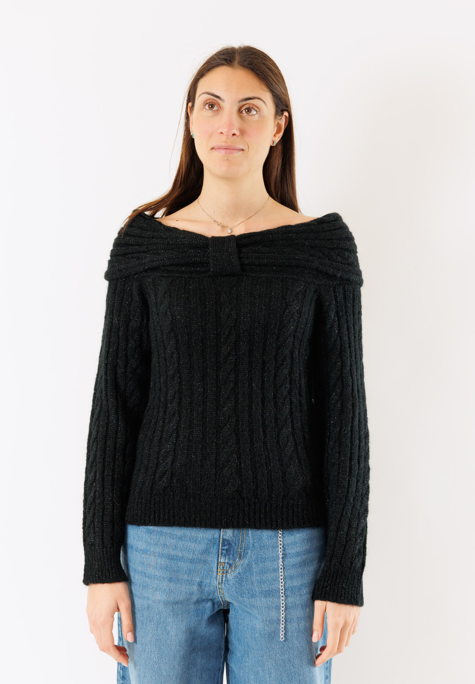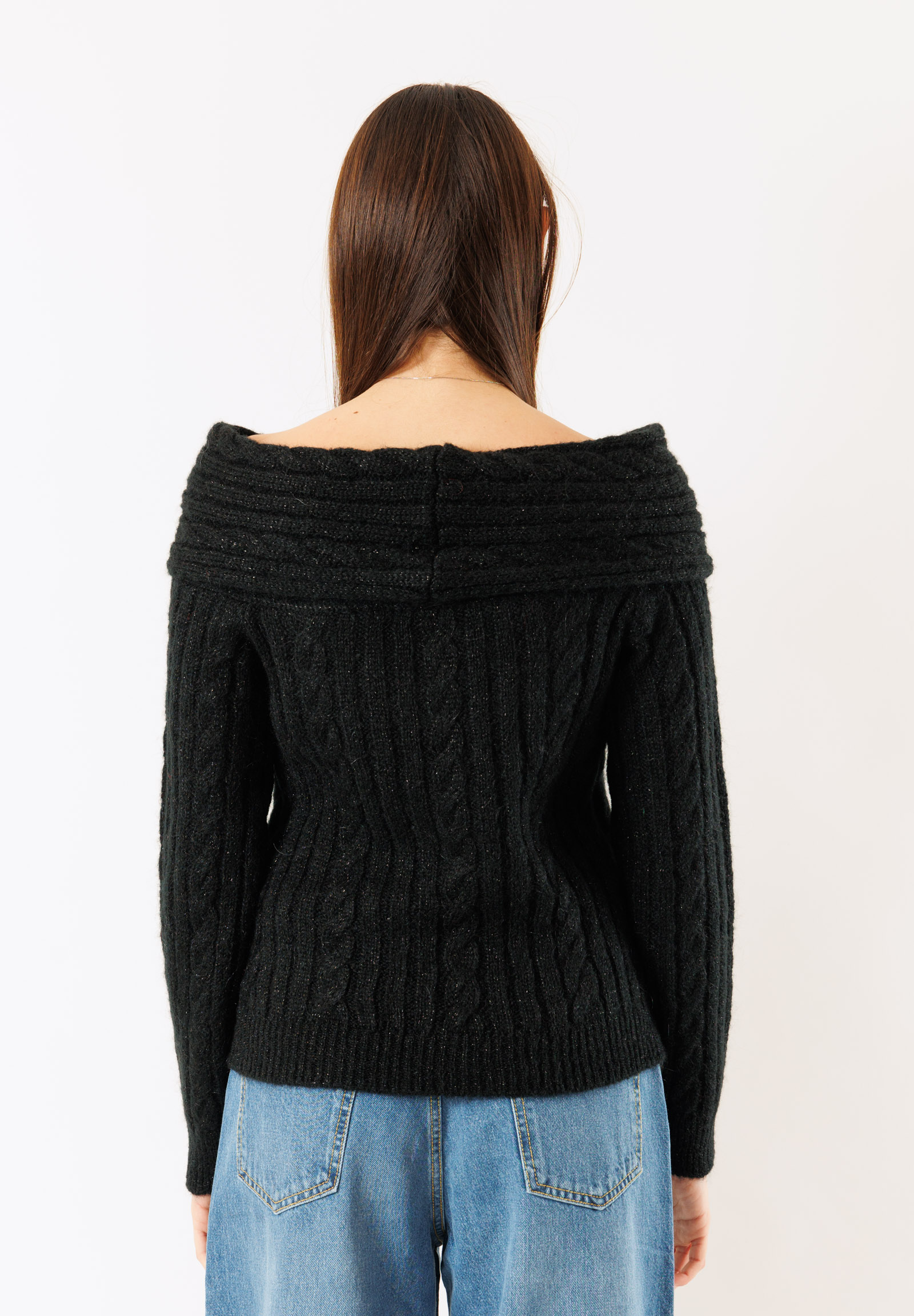 Maglia shiffer corta con trama a trecce